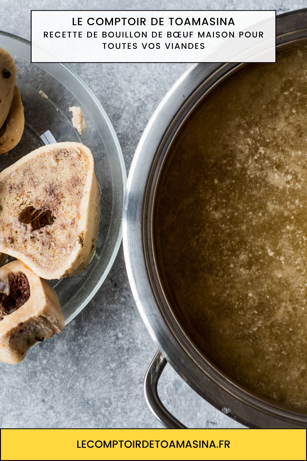Le véritable bouillon de boeuf (ou fond brun) est une extraction lente et douce. Le but est d’extraire les protéines, la gélatine (le collagène) contenue dans les os, ainsi que les arômes subtils de viandes et de légume racine. Ce processus donne naissance à un liquide ambré, brillant, riche en umami, qui possède du « corps ». Une fois refroidi au réfrigérateur, un bon bouillon maison doit d’ailleurs se gélifier : c’est la preuve ultime d’une extraction réussie ! Faire son bouillon, c’est s’assurer de contrôler à 100% les ingrédients et la teneur en sel de son assiette.