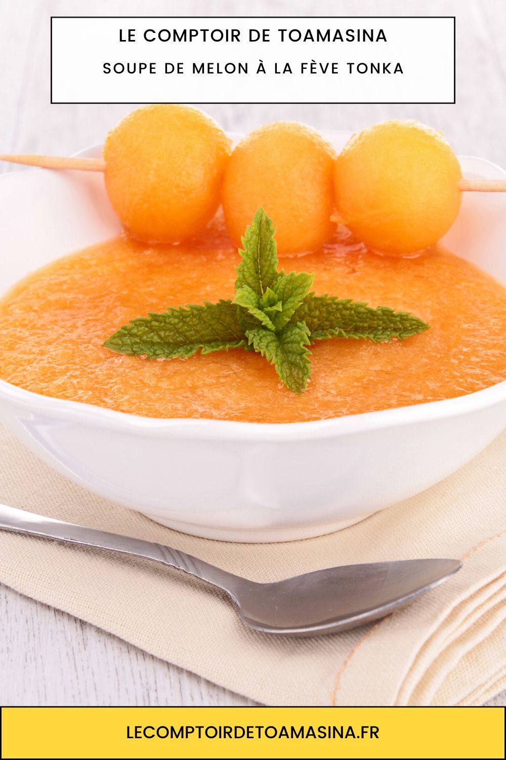 Gaspacho Glacé de Melon de Cavaillon, Parfumé à la Fève Tonka et Menthe Fraîche. Voyagez dans le monde des épices avec Le Comptoir de Toamasina. Découvrez nos poivres, vanilles et épices sur notre boutique en ligne.